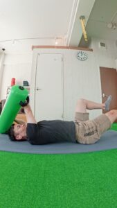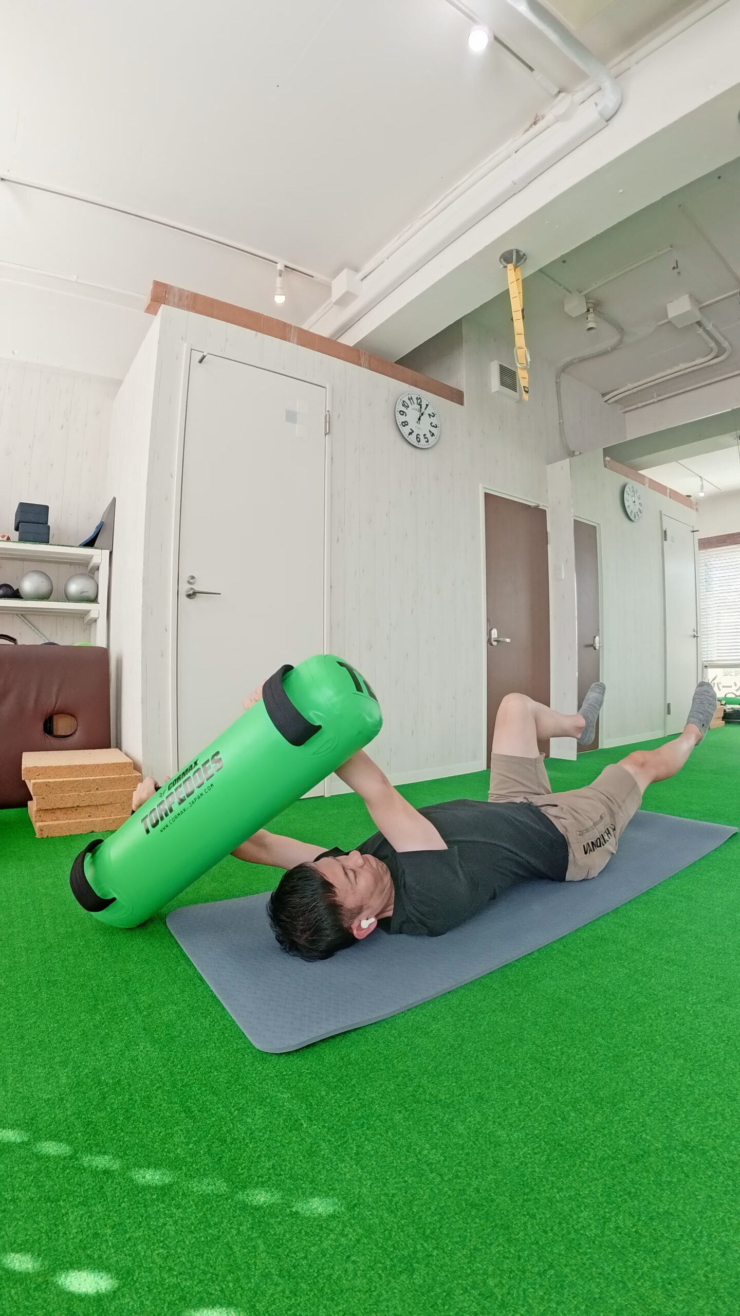 デッドバグの姿勢では骨盤と頭が一直線上に行きやすい。コントロールしやすい部分です。良い姿勢を作る。良い姿勢で手足を動かす。言うのは簡単ですが、動かすとコントロールが難しい種目です。